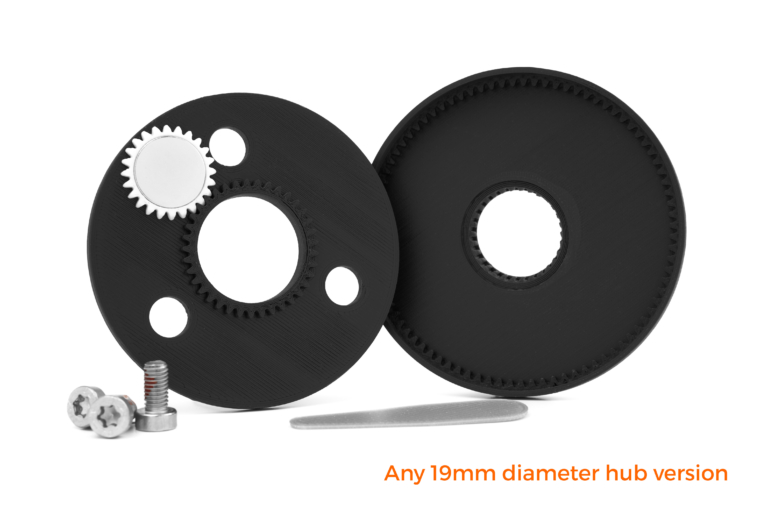 PLANET3 is a planetary gear set which reduces the rotation speed of the magnet used by the wheel speed sensor three times. For every three full rotations of the rear wheel, the magnet completes just one full rotation - effectively making the bike think it's doing 1/3 the speed it is actually doing, thus increasing the pedal assist speed limit by a factor of 3. For the Specialized models sold on EU/UK market this translates into a speed limit increase from 25 to 75 km/h (15.5 to 47 mph), while the US and Canada models limit is raised from 20 to 60 mph.