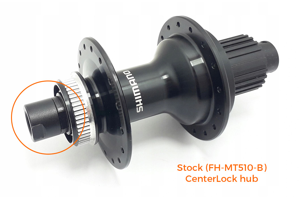 Shimano FH-MT510-B CenterLock hub that comes stock on the bike. See picture in the gallery!
