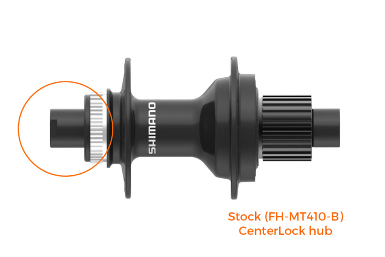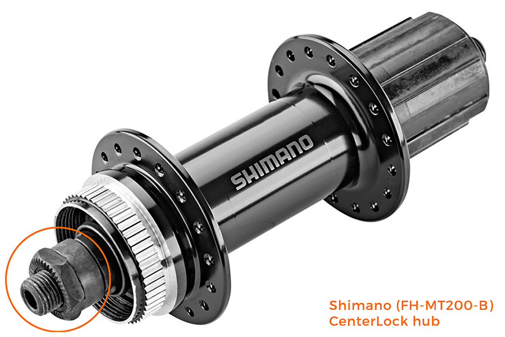 Shimano FH-MT200-B CenterLock hub that comes stock on the bike. See picture in the gallery! Does NOT require a replacement end cap.